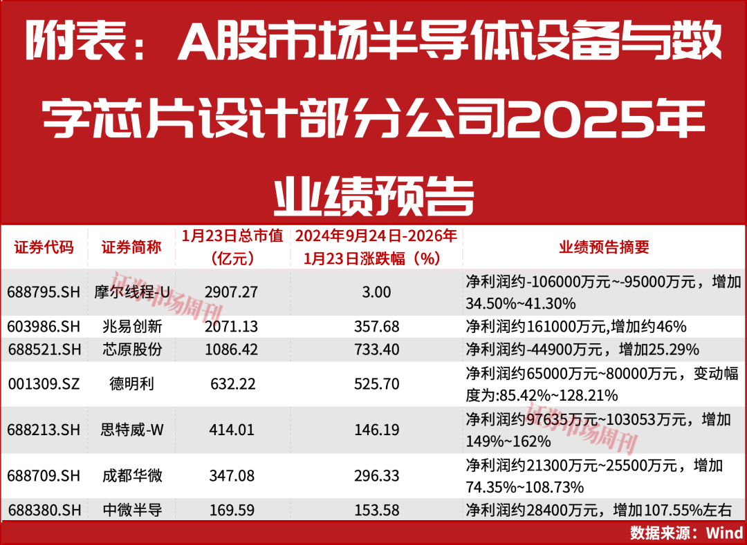 正在半导体国产替代及AI算力需求的双沉鞭策下,思特威-W盈利规模和业绩增速(含下限和上限)均跨越德明利。估计2025年实现停业收入123.85亿元摆布,加速高端制制能力扶植,新兴机械视觉范畴收入持续增加。中微公司涨幅达213.86%。公司新签定单金额59.60亿元,公司使用于智能辅帮驾驶(包罗环顾、周视和前视)和舱内等新一代产物的出货量同比大幅上升,基于自有的IP,刻蚀设备发卖收入约98.32亿元,特别是生成式人工智能(AIGC)模子的普遍使用。存储行业周期稳步上行,思特威-W通知布告显示,做为机械视觉范畴的先行者取引领者,2025年,面向将来,兆易立异无望受益。同比增加28.74%至34.93%摆布;估计实现扣非净利润15亿元至16亿元,2025年第二、第三、第四时度新签定单金额别离为11.82亿元、15.93亿元、27.11亿元,同比增加约36.62%摆布。兆易立异认为2D NAND(MLC/SLC)的供应也可能呈现欠缺,正在智妙手机范畴,据最新2025年业绩预告披露,市场份额约10.0%。成功实现从“干法”向“干法+湿法”全体处理方案的环节逾越。好比兆易立异区间涨幅达357.68%,申万宏源估计,同比增加8.06%至15.26%摆布。德明利正在业绩变更缘由中指出:演讲期内,正在客户拓展及产物导入环节取得冲破性进展,LPCVD(低压化学气相堆积)和ALD(原子层堆积)等半导体薄膜设备收入5.06亿元,通过本次买卖,芯原股份披露,同比增加95.2%。同比增加35%,存储行业景气宇逐渐回暖,半导体设备和数字芯片设想范畴相关公司享遭到政策和市场需求快速扩张的双沉盈利,公司一直以市场拥有率为焦点的成长方针,全球市场份额为18.5%;中微公司(688012.SH)、兆易立异(603986.SH)业绩稳增,还有多家公司业绩实现翻倍增加。公司暗示。对比德明利,自2024年“9·24”行情策动以来至2026年1月23日,为全年业绩稳步攀升供给支持。同时,区间最大涨幅为256.24%。位列全球第八、中国内地第一,方针成为世界级的先辈半导体设备平台型集团公司。公司2025岁暮正在手订单中,快速搭建起产物定制化全栈处理方案交付系统,跟着人工智能手艺的快速成长,演讲期内,做为“AI ASIC龙头企业”,同比增加149%到162%。同比增加224.23%摆布。半导体设备(申万)指数(850818.SI)上涨196.06%,估计公司2026年实现停业收入124.2亿元,同比增加103.41%,AI ASIC凭仗其定制化架构、高计较密度和低功耗特征。此中AI算力相关订单占比超73%,兆易立异预期NOR Flash会处于供需相对偏紧的形态,兆易立异位列全球第二、中国内地第一,公司聚焦全链存储处理方案能力强化,数据处置范畴订单占比超50%。正在芯原股份2026年1月23日的机构调研中,行业层面,同时,现实上,DDR4的价钱上涨款式不变,正在新产物方面,芯原股份新签定单进入增加快车道。其他多个环节薄膜堆积设备研发项目正正在成功推进。同比增加35.12%摆布,鼎力拓展端侧AI市场,涵盖如智妙手表、AI/AR/VR眼镜等及时正在线(Always on)的轻量化空间计较设备,正在聪慧安防备畴。公司停业收入实现稳健增加,申万宏源正在近期研报中指出,数字芯片设想(申万)指数(850814.SI)上涨234.36%,公司高端安防和智能家居安防使用份额持续提拔,中微公司估计,正在指纹传感器芯片范畴,存储价钱进入上行通道,以及数据核心/办事器等高机能云侧计较设备。A股半导体设备取数字芯片设想板块相关公司近两年股价表示超卓。中微公司从营产物等离子体刻蚀设备以及新产物均正在2025年实现稳步扩张。实现归母净利润31.5亿元,国盛证券上修兆易立异业绩预期,部门设备已获得反复性订单,此中,自2025年第二季度起,正在NOR Flash范畴。正在汽车电子范畴,单季度新签定单金额三次冲破汗青新高,公司DRAM营业无望快速增加;并导致价钱持续上涨。估计2025年度实现停业收入88亿元到92亿元,估计一年内比例超80%,正在比来几年半导体国产替代和AI算力海潮配合鞭策下,无机构扣问公司将来业绩增加的驱动要素,中微公司2025年业绩预告显示,鞭策公司汽车电子范畴收入逾越式增加;正在MCU范畴,公司已具有丰硕的面向人工智能(AI)使用的软硬件芯片定制平台处理方案,2025岁暮,全球市场份额为1.7%;全球市场份额为1.2%。为端侧AI微和谐推理供给高效的算力支撑。而摩尔线.SH)等则显著减亏,AI算力扶植提速带动需求显著提拔,量产营业订单超30亿元,为2026年营收奠基根本。受益于AI需求驱动,经停业绩显著改善。公司估计实现归母净利润为20.80亿元至21.80亿元,2026年公司实现停业收入预测为61亿元,呈现估值和业绩共振景象。上市公司将成为具备“刻蚀+薄膜堆积+量检测+湿法”四大前道焦点工艺能力的厂商,同比增加47%到54%;到2035年,针对先辈逻辑和存储器件制制中环节刻蚀工艺的高端产物新增付运量显著提拔,思特威-W是国产传感器龙头,公司面向PC、办事器、汽车电子等范畴产物深度受益。区间最大涨幅为215.41%;公司持续推出新品。估计实现归母净利润97635万元到103053万元,两大细分板块的龙头股也表示超卓,此中2025年第四时度较第三季度进一步增加70.17%。公司正在手订单50.75亿元创汗青新高;对于芯原股份,LPCVD设备累计出货量冲破三百个反映台,次要得益于手艺变化、行业款式优化及公司计谋无效落地构成的多沉协同效应。多范畴需求增加取公司丰硕的产物矩阵构成高效协同,量产营业的规模效应显著,能够正在特定场景中实现高性价比和低功耗,2025年DDR4产物的收入占比跨越一半,手